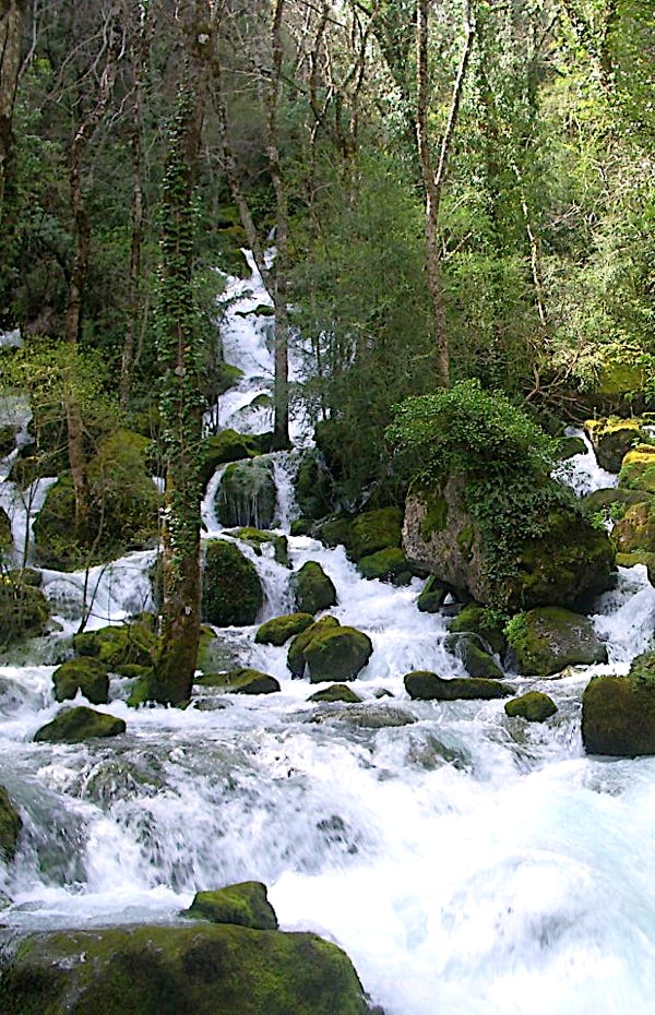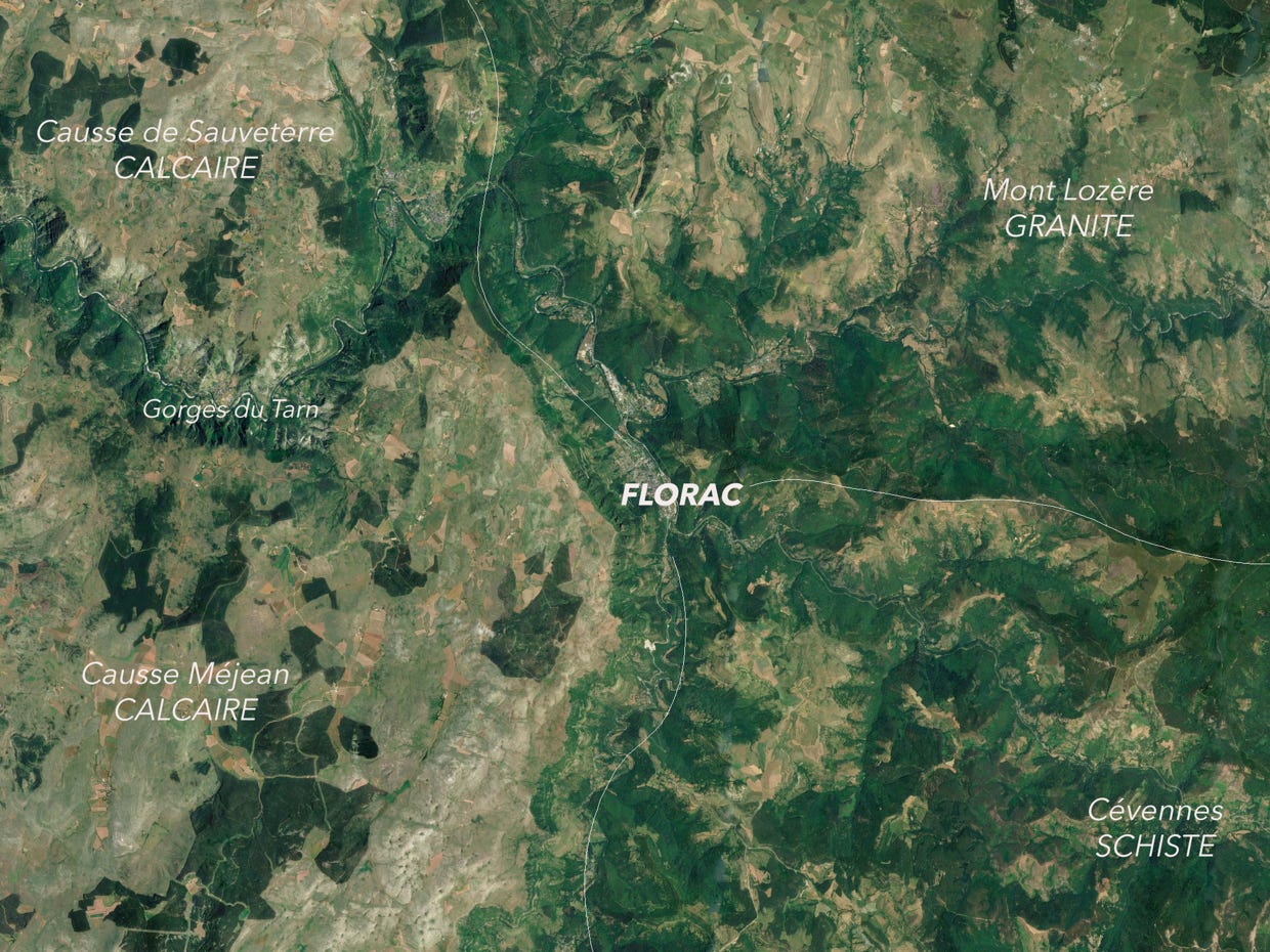 Le village de Florac, dans le département français de la Lozère, se situe au confluent de trois vallées qui séparent trois massifs géologiques remarquables : les Cévennes, composées de schistes. le Mont Lozère, composé de granite, et le causse Méjean, haut plateau composé de calcaire, comme tous les causses. Il se situe également au confluent de quatre rivières. : la source du Pêcher, le Tarnon, le Tarn et la Mimente. Fondé au XIIe siècle, il doit entre autres sa prospérité à la source du Pêcher et aux viviers à truites aménagés en aval depuis des siècles. La présence de l’eau est si importante qu’elle a engendré pour le nom de Florac une étymologie alternative .